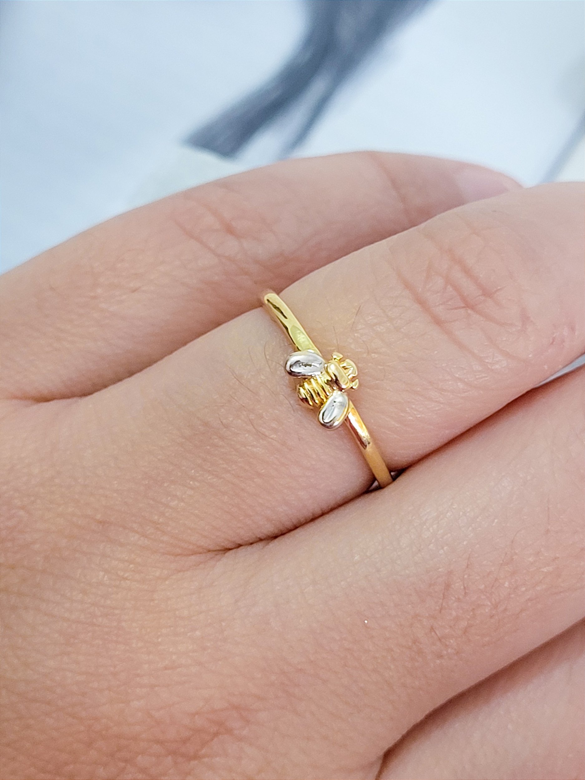 Anel Abelha Delicada, uma peça encantadora que une delicadeza e estilo em cada detalhe. Com design minimalista e toque lúdico, apresenta uma abelhinha charmosa banhada a ouro amarelo, enquanto suas asas em ouro branco trazem contraste e brilho sutis. Regulável e confortável, é um acessório cheio de personalidade, perfeito para adicionar um toque doce e sofisticado ao visual.