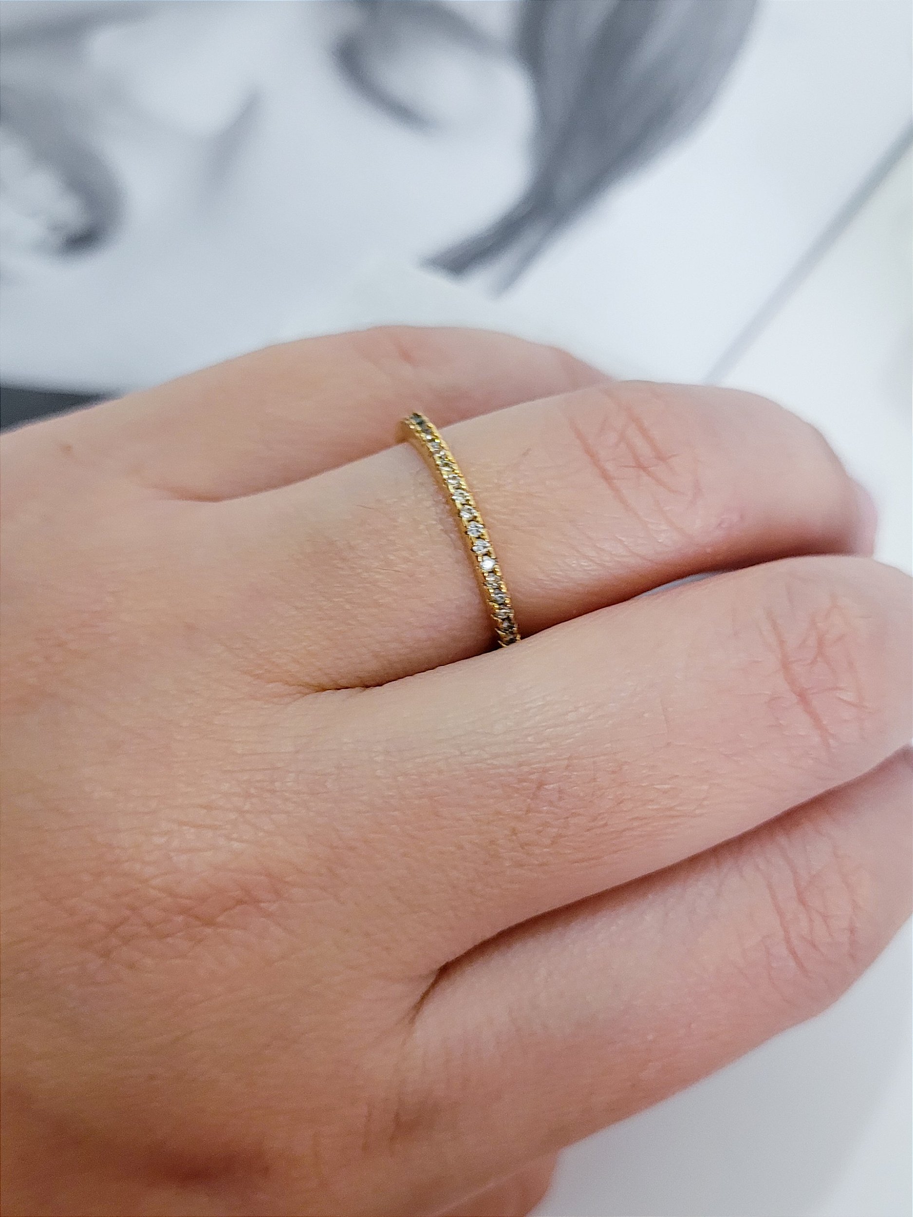 Anel Aparador Delicado, uma joia fina e elegante que encanta pela sutileza dos detalhes. Com cravação de zircônias de 1mm na parte superior, ele adiciona um toque de brilho suave e sofisticado ao visual.