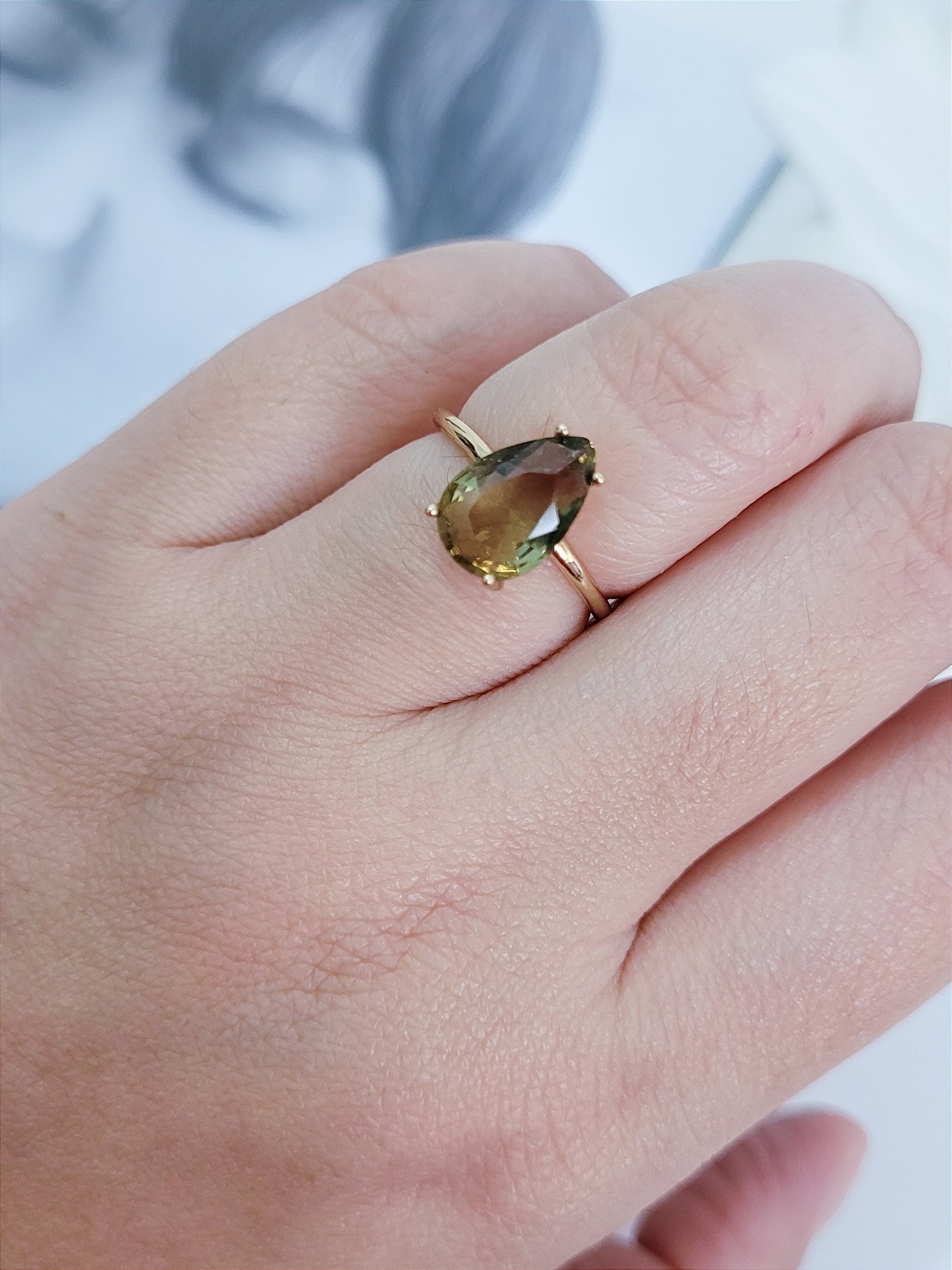 Anel Gota Topázio Fumê, uma joia que exala elegância e sofisticação em cada detalhe. Sua pedra em formato de gota, com o tom inconfundível do topázio fumê, reflete um brilho único e envolvente, perfeito para quem aprecia peças marcantes e cheias de personalidade.