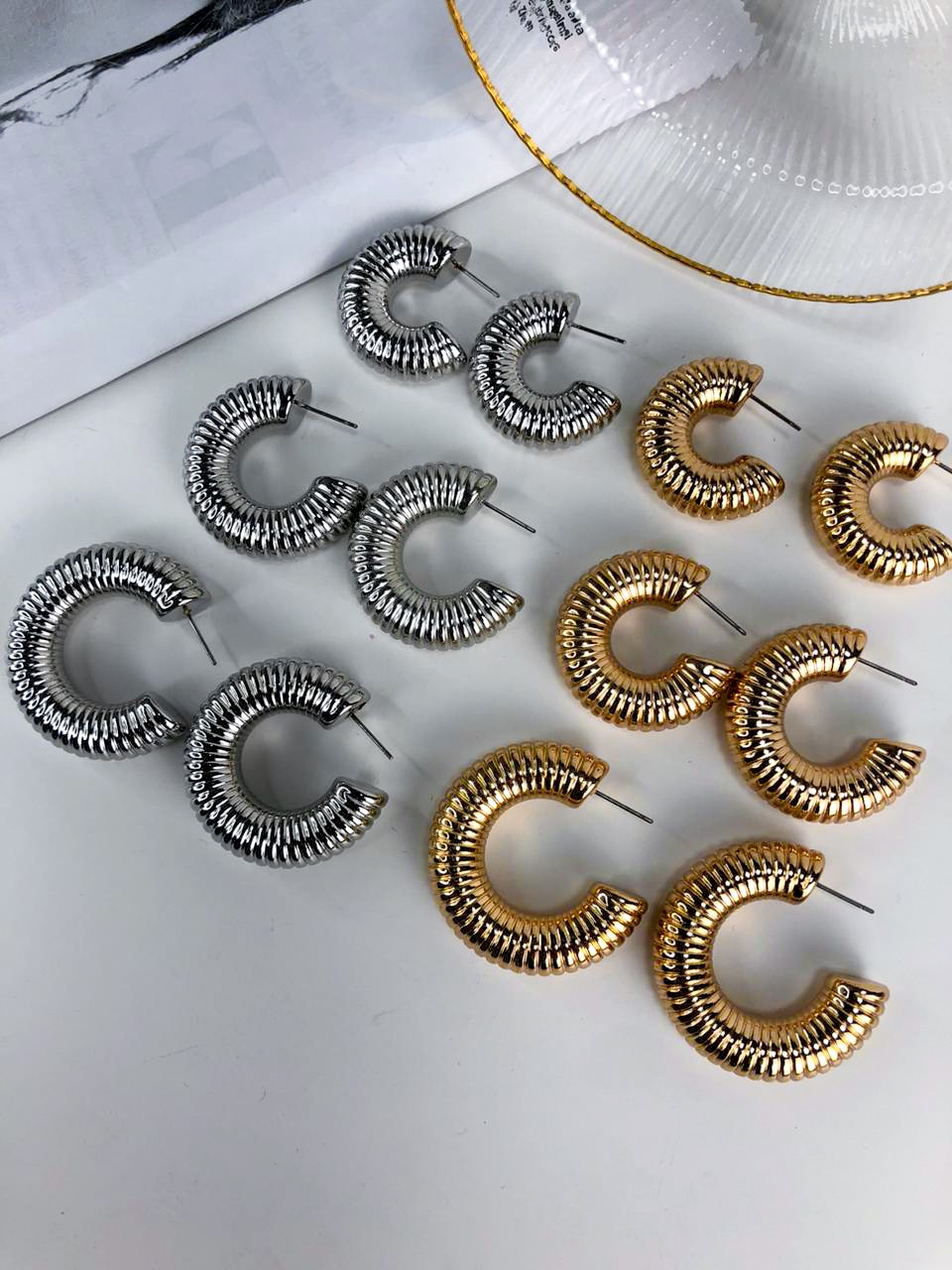 Argola Trabalhada Levíssima, uma peça estilosa que une charme e personalidade em cada detalhe. Seu design texturizado garante um toque moderno e sofisticado, perfeito para quem ama acessórios que se destacam.