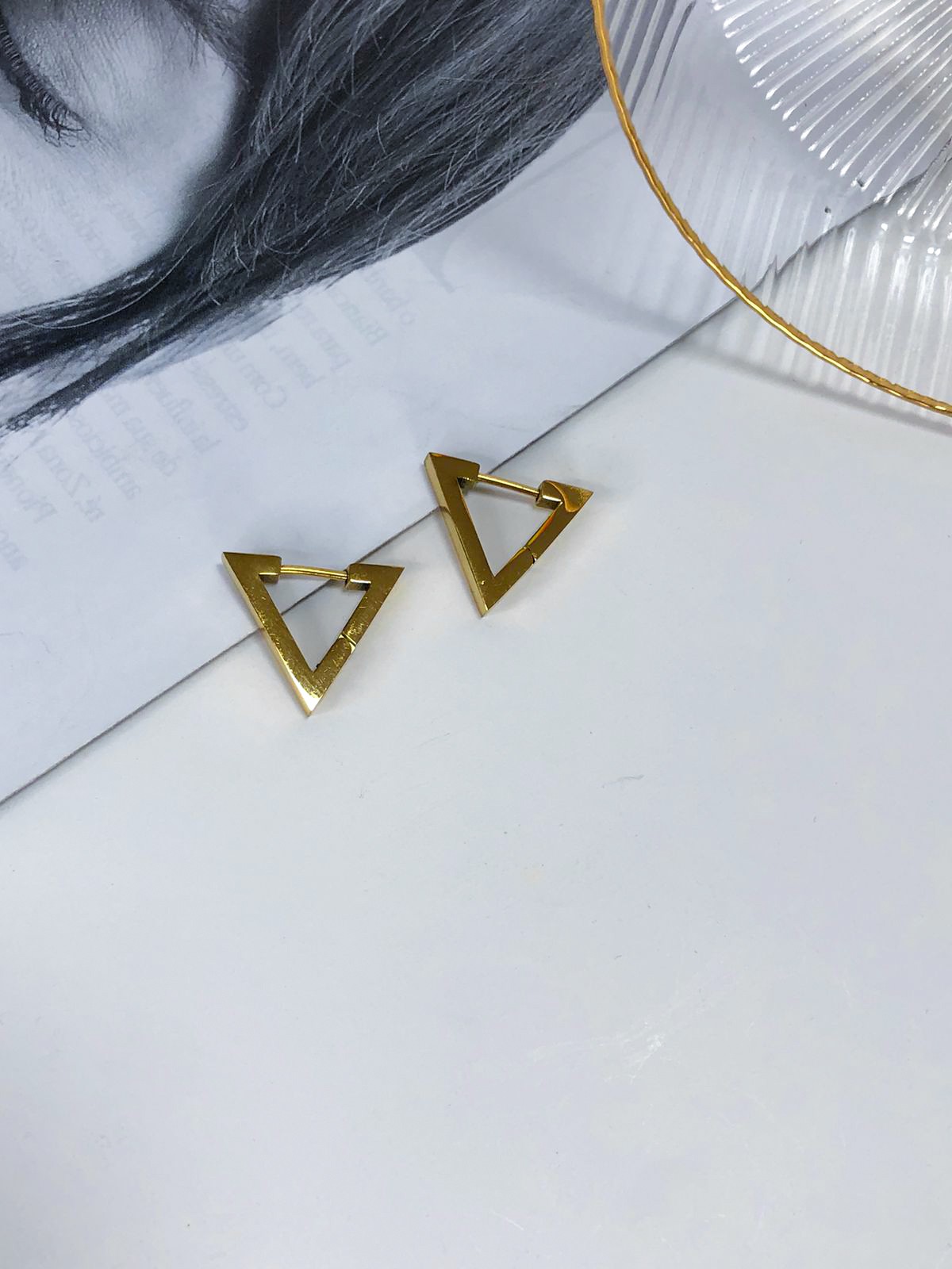 Argola Triângulo Lisa, uma peça que combina modernidade e minimalismo em cada detalhe. Seu formato geométrico traz um toque contemporâneo e discreto ao visual, perfeita para quem busca acessórios leves e versáteis. Ideal para o dia a dia.