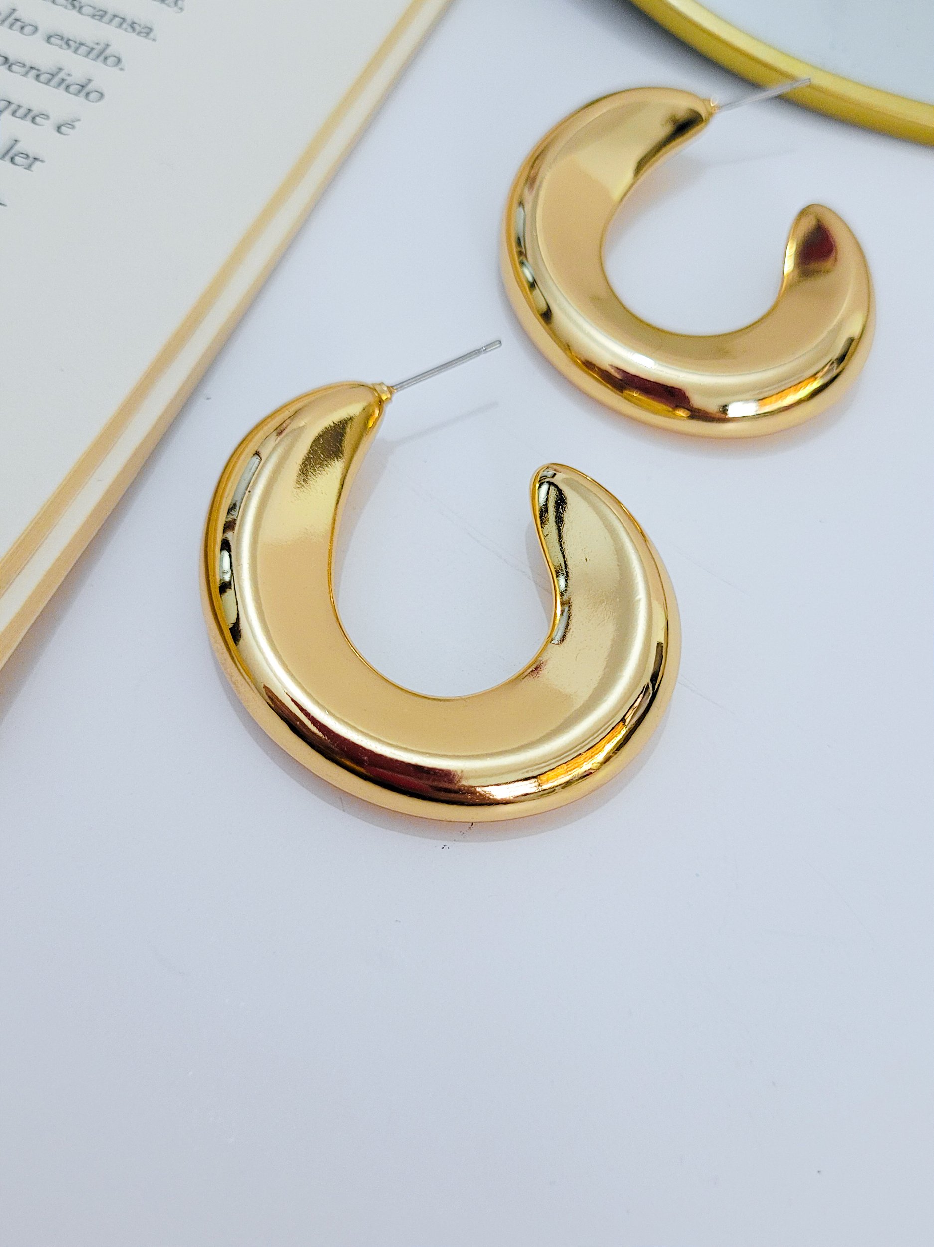 Brinco Argola Formato Orgânico, uma peça que combina estilo e modernidade em cada curva. Com design em formato orgânico e acabamento impecável, essa argola de tamanho médio traz um visual contemporâneo e cheio de personalidade. Disponível nos banhos de ouro amarelo e branco, é daquelas peças que elevam qualquer produção com elegância e atitude.