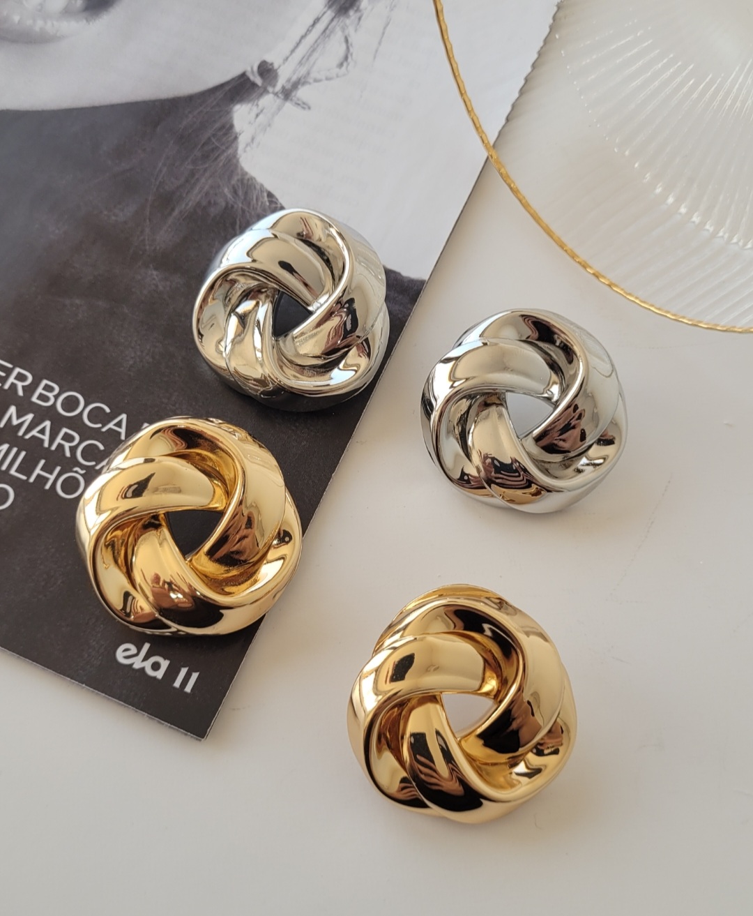 Brinco Voltas, uma joia marcante que une modernidade e sofisticação em cada curva. Seu design diferenciado, com delicadas voltas em acabamento polido banhado a ouro amarelo, cria um efeito visual leve e elegante, perfeito para quem busca um toque de estilo com presença. Ideal para compor produções contemporâneas, transita com facilidade entre o casual refinado e ocasiões especiais, sempre com charme e personalidade.